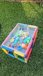 宜家Vessla这个尺寸可以卡在35x35cm的框架里,带上盖子就可以收纳,这种塑料的更适合玩沙子做感观盆
