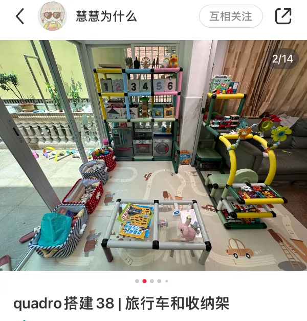 |xhs@娜娜和宝平欧巴|和|xhs@吉祥如意小裁缝|家都有布艺,娜娜家的主打可爱选择的布料都比较卡通,小裁缝家主打厚实。小裁缝家还可以买到全包围版蹦床布。还可以选择艾亚教具,老板做产品也很用心。