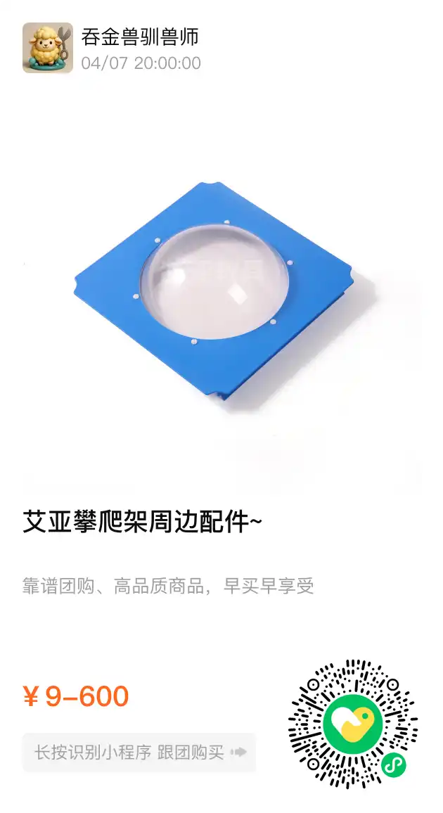 艾亚家的周边非常丰富,特别推荐他家两个产品:1. 亚克力太空球透度非常好而且很厚实,2. 亚克力洞洞板,洞口做了特殊处理非常圆润绝对不会划破大人小孩细嫩的肌肤。